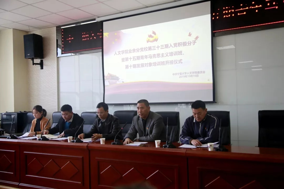 分党校第三十三期入党积极分子培训班暨第十五期青年马克思主义培训班、第十期发展对象培训班开班仪式于贺兰山校区文荟楼309会议室举行。本次会议由学院党委副书记金玉河主持,学院院长胡玉冰、党委副书记马小军、辅导员潘巍、余晓玲及第三十三期入党积极分子、第十期发展对象参加。
