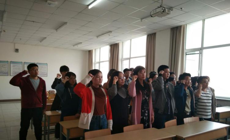 大会在新发展的预备党员在党旗下进行入党宣誓、老党员重温入党誓词中开始,领誓人是党支部组织委员欧逸梅。"我志愿加入中国共产党,拥护党的纲领……为共产主义奋斗终身,随时准备为党和人民牺牲一切,永不叛党"。党员们语气铿锵有力,眼神坚定镇若,激情饱满。接下来,党员进行自我评议。评议环节分自评和互评。党员就自身存在的不足,进行深刻的检讨和自我反思。闫慧颖同学说,自己在思想理论素养方面有所欠缺,因为面临毕业,对政治理论学习投入的精力有限,今后需进一步加强。刘利宁同学说,自己平常懒散,自我要求不高,自律不严,不积极主动,做事拖沓,没有起到党员的先锋模范作用,需在今后的学习生活中深刻剖析自己,加强自律性。吕紫禾同学说,自己的政治理论学习有待深入,自己今后要合理安排专业学习和政治学习的时间,客服学习上拖延的不足,要不断提升自己…… 新老党员通过自评和互评这种民主的方式,认真进行批评和自我批评,反思自己,深刻认识到自己的不足和今后努力的方向。党员发言都很诚恳,朴实。最后全体党员又按照年级分成3个小组进行谈心和交流,大家积极发言,侃侃而谈,气氛活跃。支部书记史春燕做最后总结和发言。