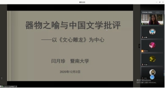 于腾讯会议平台举行了题为“器物之喻与中国文学批评”的学术讲座。本次讲座特邀暨南大学天天影视
