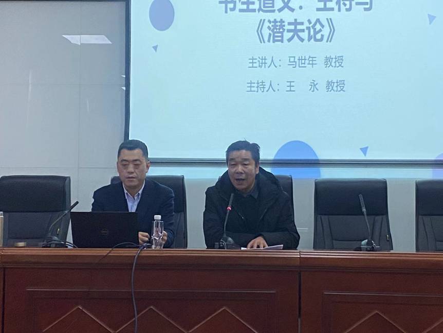 其次,马教授引用刘文英的《王符评传》,介绍《潜夫论》的题意。王符号“潜夫”,意为“隐居山野的隐士”,以《潜夫论》为题表达了王符对自我价值认识,对时代和世俗的抗议,展现了作者的人生理念和信仰。