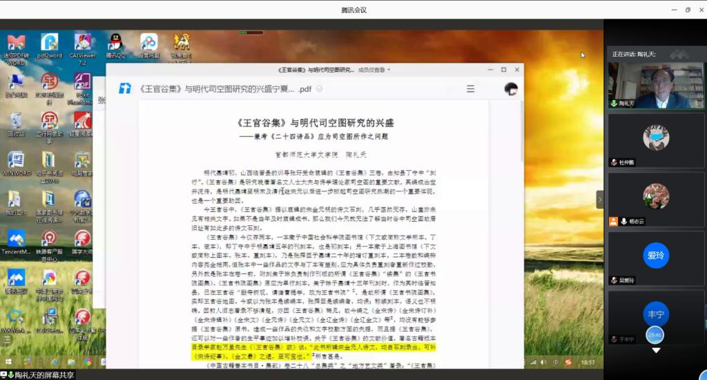 于腾讯会议平台举行了题为《<王官谷集>与明代司空图研究的兴盛——兼考<二十四诗品>应为司空图所作之问题》的学术讲座。本次讲座特邀中国《文心雕龙》学会副会长、首都师范大学天天影视