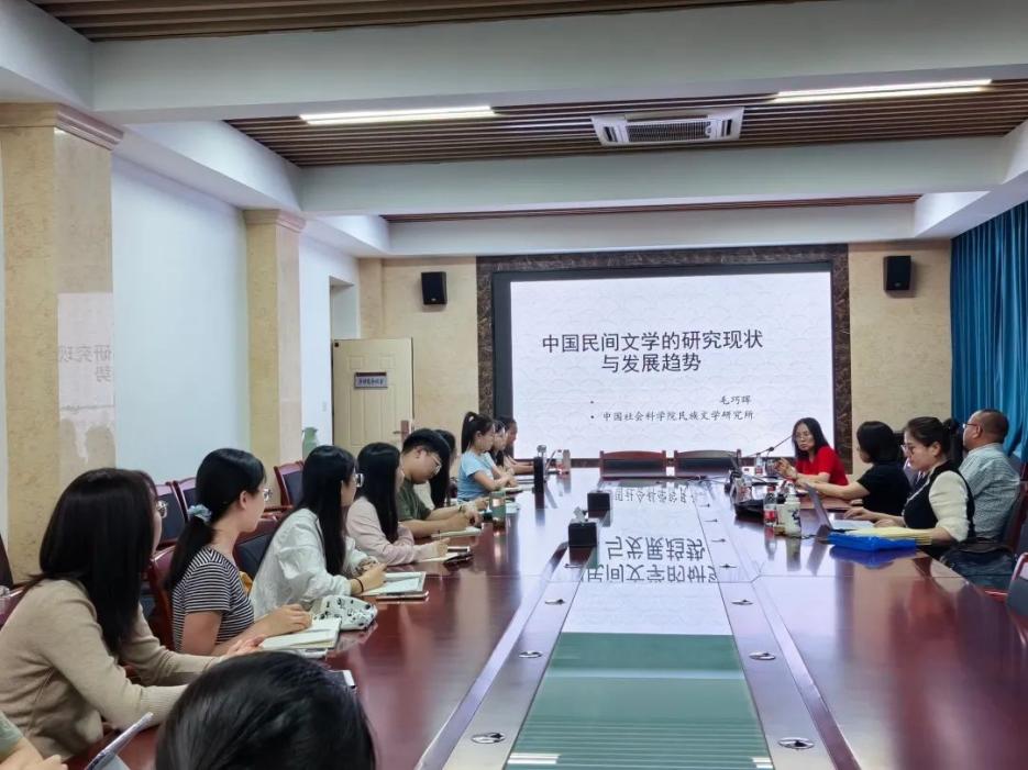 于怀远校区怀远楼718室举办了题为“中国民间文学研究现状与发展趋势”的学术讲座。本次讲座特邀中国社会科学院民族文学研究所研究员、北方室主任、中国社会科学院大学教授、博士生导师毛巧晖老师主讲。讲座由天天影视