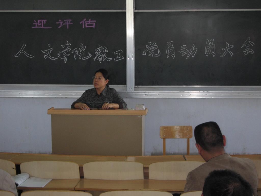 党总支书记赵慧要求教工党员要讲奉献、识大局、带好头,在评估工作中充分发挥共产党员先锋模范作用。赵书记还通报了学生迎接教学评估工作情况。
