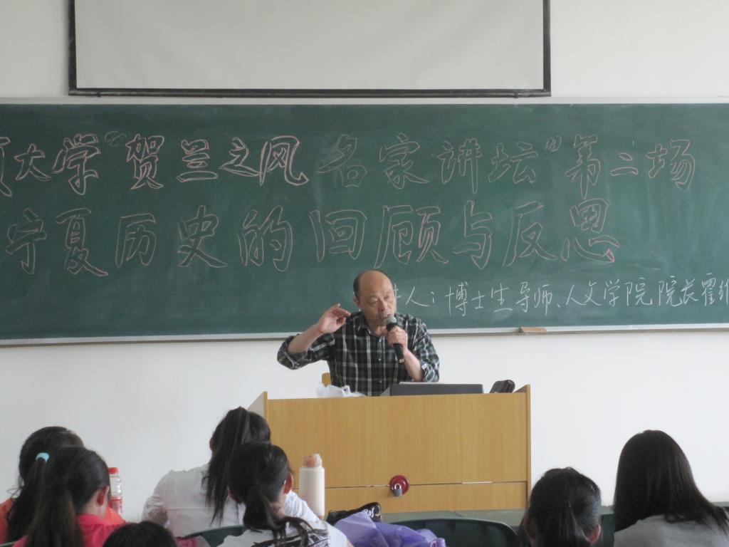 院长霍维洮教授主讲的《宁夏历史的回顾与反思》专题报告会。