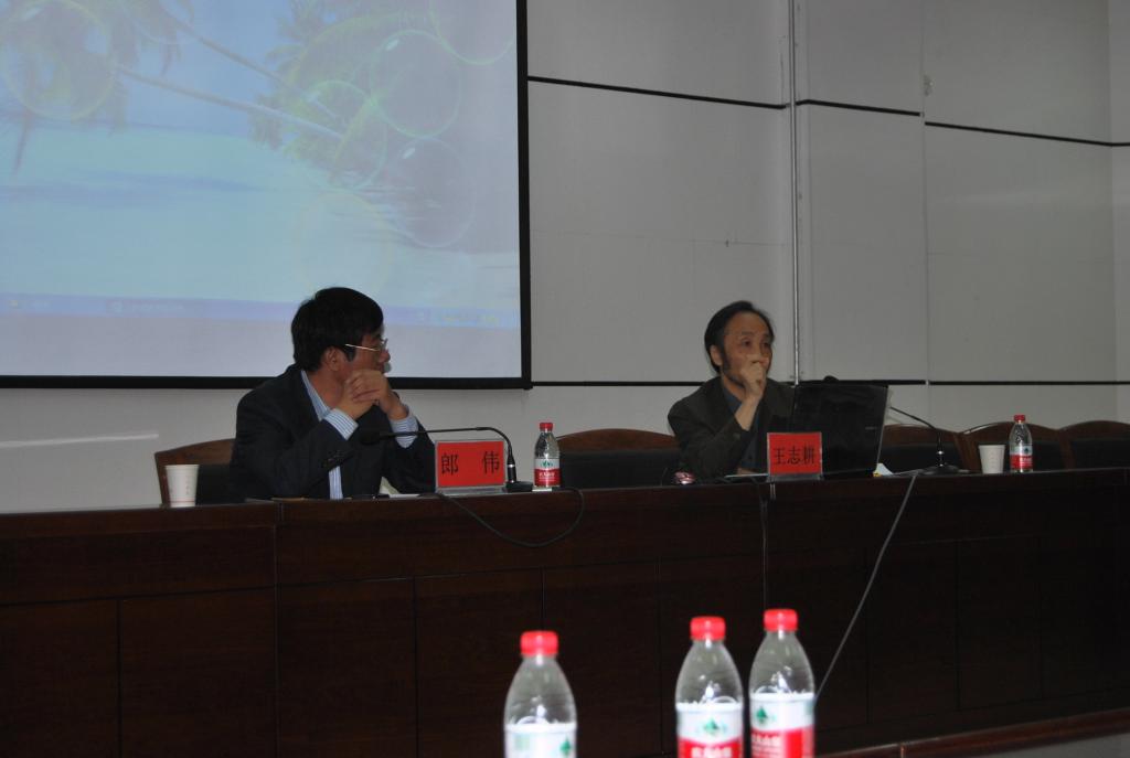 院长、硕士生导师郎伟教授主持,他为全院师生介绍了王志耕教授的学术特长和研究方向,并对王志耕教授的到来表示热烈的欢迎。在大家热烈的掌声过后,王教授用一番幽默的话语开始了他的学术报告。对于文学,王教授有着他独到的见解。他认为文学就是一面镜子,人类正需要这面镜子来发现和证明自己,而欧美文学则完整体现了人类发展的清晰脚步。强调了文学的重要性后,王教授便对欧美文学史中所体现的人的自我意识的兴起和陨落分别进行了详细的阐述。他指出,人的自我发现,即人本主义的出现,使人类由过去的混沌状态变为分析状态,这就是主体确立的时代;而基督教文化则带给欧洲一种道德律令,人类逐渐开始强调精神的功用;文艺复兴以后又加入了理性概念,对理性的崇拜开始兴起。所谓自我失落的阶段就是人的本质属性分裂的时期,王教授根据巴尔扎克的作品《驴皮记》说明了这一点。报告进行了两个多小时,老师和同学们被王教授渊博的知识和深入浅出的讲解深深折服。大家利用三十分钟的时间,就自己感兴趣的话题提出疑问,在王教授耐心的讲解下也得到了满意的答案。根据王教授的学术特长和研究方向他被我校特聘为兼职教授并授予聘书。