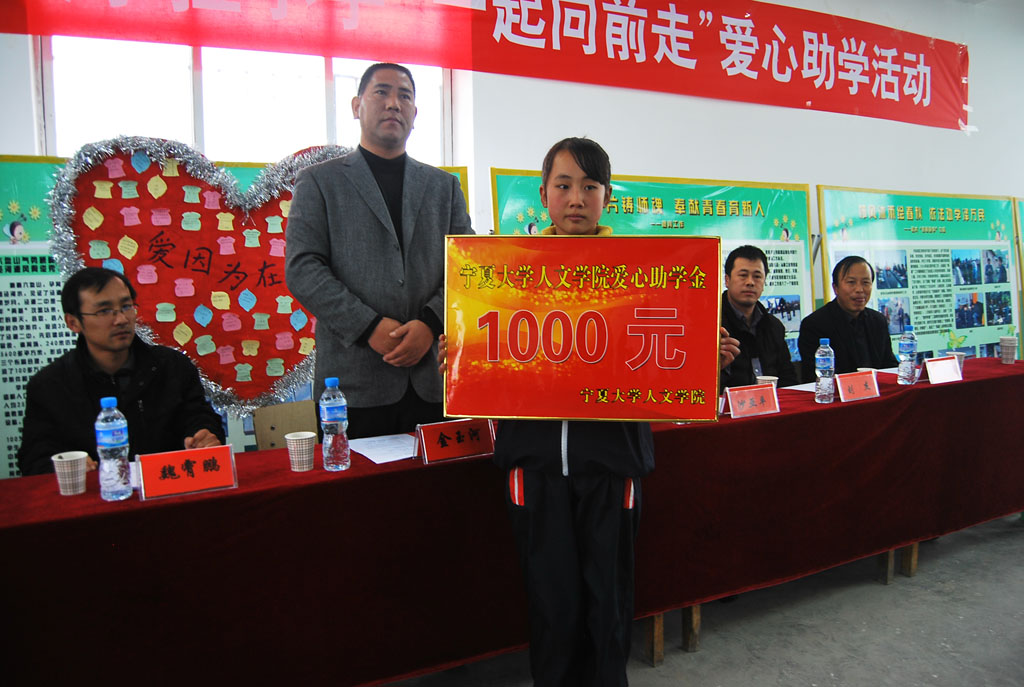 向全校24名品学兼优学生每人发放50元奖学金,向家庭困难学生代表发放爱心助学金1000元,并向各班发放爱心助学物资,主要是体育用品,如篮球、羽毛球、乒乓球等。同时由泾源县团委、泾源县教育局、为天天影视