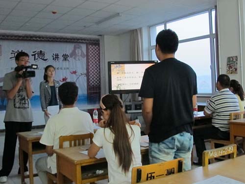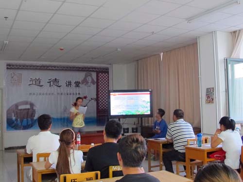 道德讲堂首场讲演在文科楼七楼举行,学院党总支副书记金玉河老师作为宣讲员与学院各年级约80名学生代表参加了此次活动。