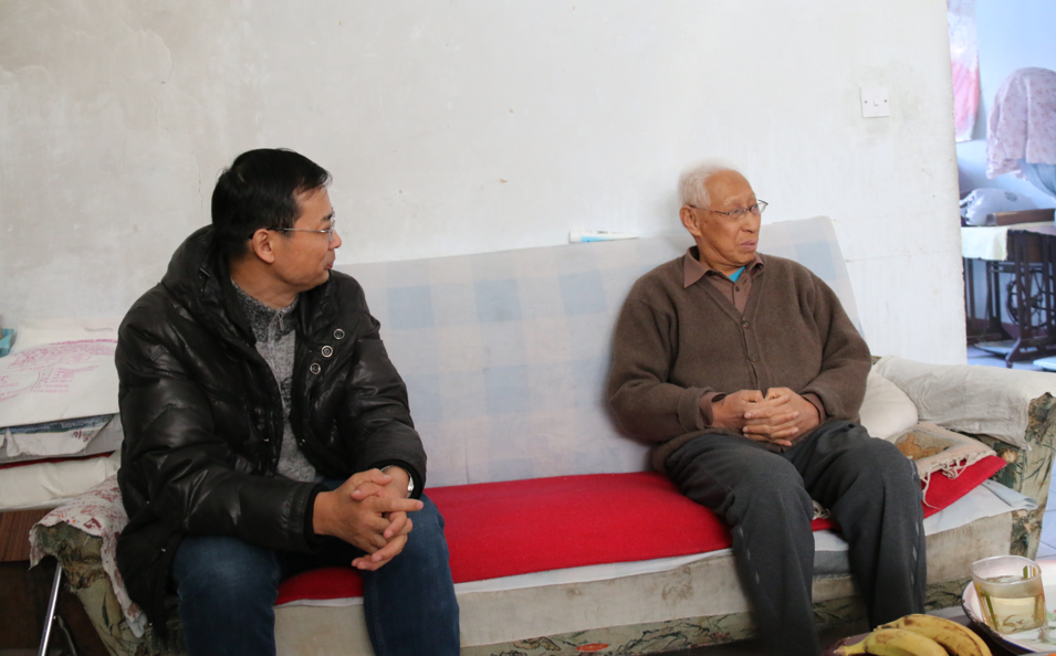 在历史系退休教师牛春生老师家中,马正亮详细询问了王老师身体和生活状况。得知牛老师身患眼疾,马书记希望他积极治疗,保持良好的生活习惯和积极向上的心态,共享天伦之乐。