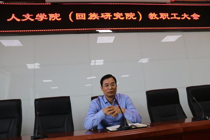 在文荟楼309会议室召开教职工大会。两院院领导、教职工参加会议。