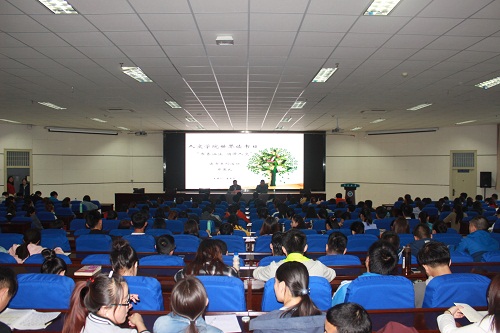 在贺兰山校区文科楼东侧报告厅举行了第22届世界读书日系列活动开幕式暨专题讲座。此次活动由学院党委副书记金玉河主持,院长胡玉冰主讲。学生工作办公室主任刘杰、辅导员潘巍老师、学院2015、2016级全体学生参加。