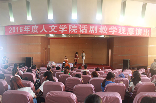 话剧教学观摩演出在怀远校区图书馆一楼报告厅成功举行。院党委书记鲁晋,院长胡玉冰,副院长王岩森、刘鸿雁、杨浣,部分中文系老师和14、15级学生观看了此次演出。 本次话剧教学观摩演出以2014级汉教一班带来的《罗密欧与朱丽叶》拉开帷幕,忠贞凄美的爱情故事令人唏嘘感叹。接着,2014级文秘班带来了享誉世界的喜剧《伪君子》,让观众在笑声中思考人生的真假善恶。曹禺的《雷雨》1935年首演,至今上演不衰,被誉为“表演的教科书”,2015级中文系学生的精彩演绎赢得了观众阵阵掌声。最后,2014级汉教二班带来了《暗恋桃花源》,真挚持久的恋情与人生沧桑交织在一起,不禁让人潸然泪下。 演员们张力十足的表演使得故事和人物形象变得生动、鲜活起来,现场观众仿佛亲身感受到了剧中演绎的悲欢离合、爱恨情仇,不时响起热烈的掌声。 演出落幕后,胡玉冰院长对整场演出作了精彩点评。他首先称赞了演员们的精彩表演,然后对四场话剧的指导老师——丁峰山、魏兰、李生滨、白晓荣、范文艳、于凤艳、马永利的指导水平和辛勤工作予以肯定。同时,胡院长充分肯定了话剧表演这种教学方式,不仅培养了中文系学生的专业知识和学科素养,强化了学生对话剧及表演艺术的欣赏和尊重,还是人天天影视